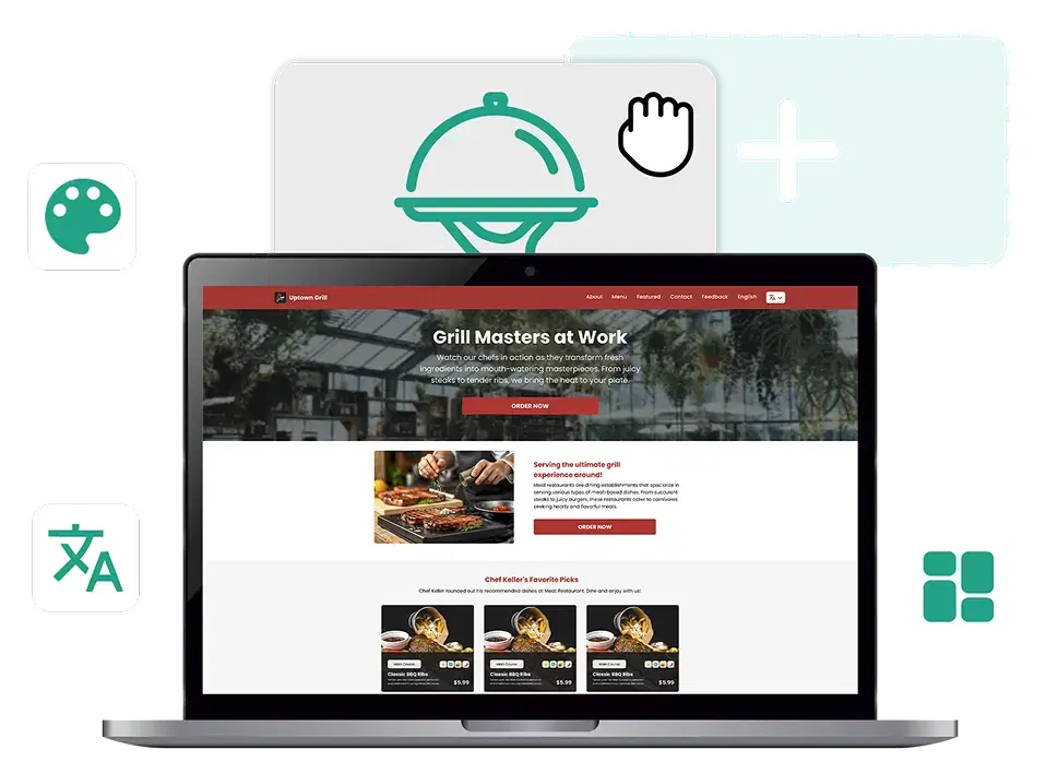 Build a modern restaurant website directly inside MENU TIGER. Drag-and-drop tools let you publish menus, accept orders, and promote specials—no technical skills needed.
